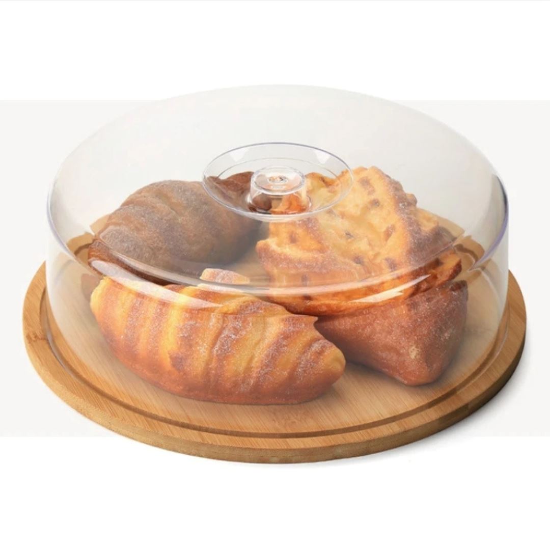 Feita em bambu resistente com acabamento natural e tampa em acrílico transparente, essa bandeja combina rusticidade e modernidade na medida certa. Ideal para armazenar e servir queijos, manteiga, pães e frutas, ela mantém os alimentos frescos e protegidos — sem abrir mão do estilo.