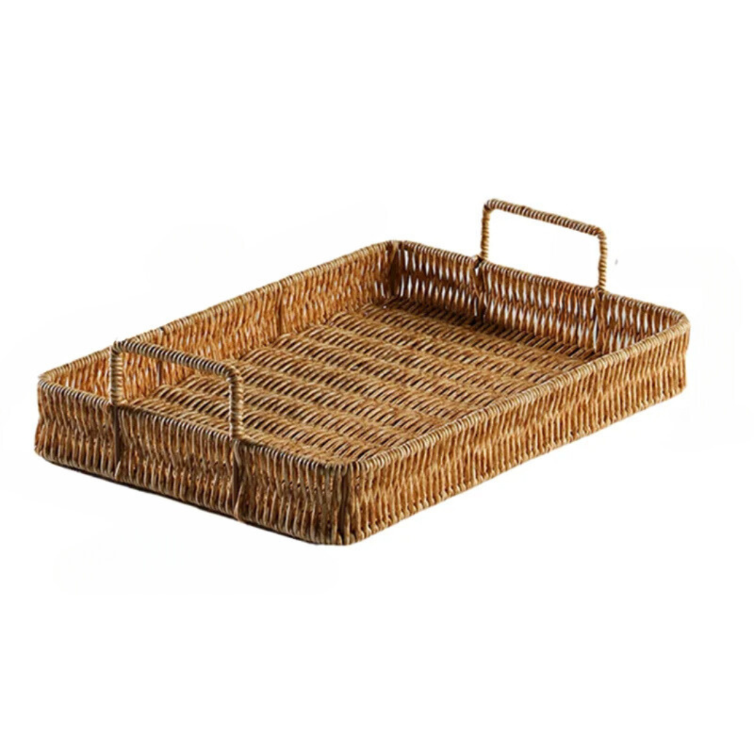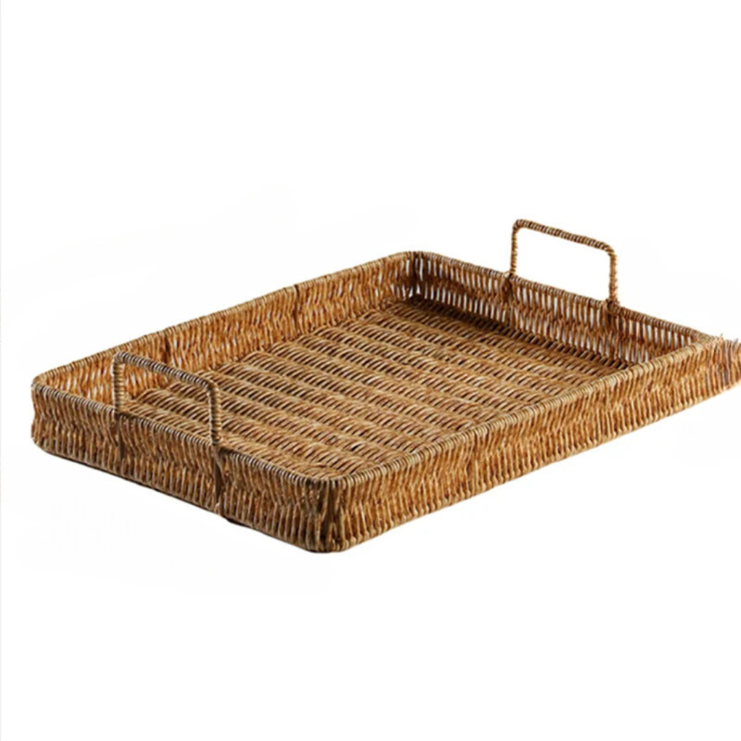 Bandeja Retangular de Vime Artesanal com Alça de Madeira: Estilo rústico para encantar sua mesa