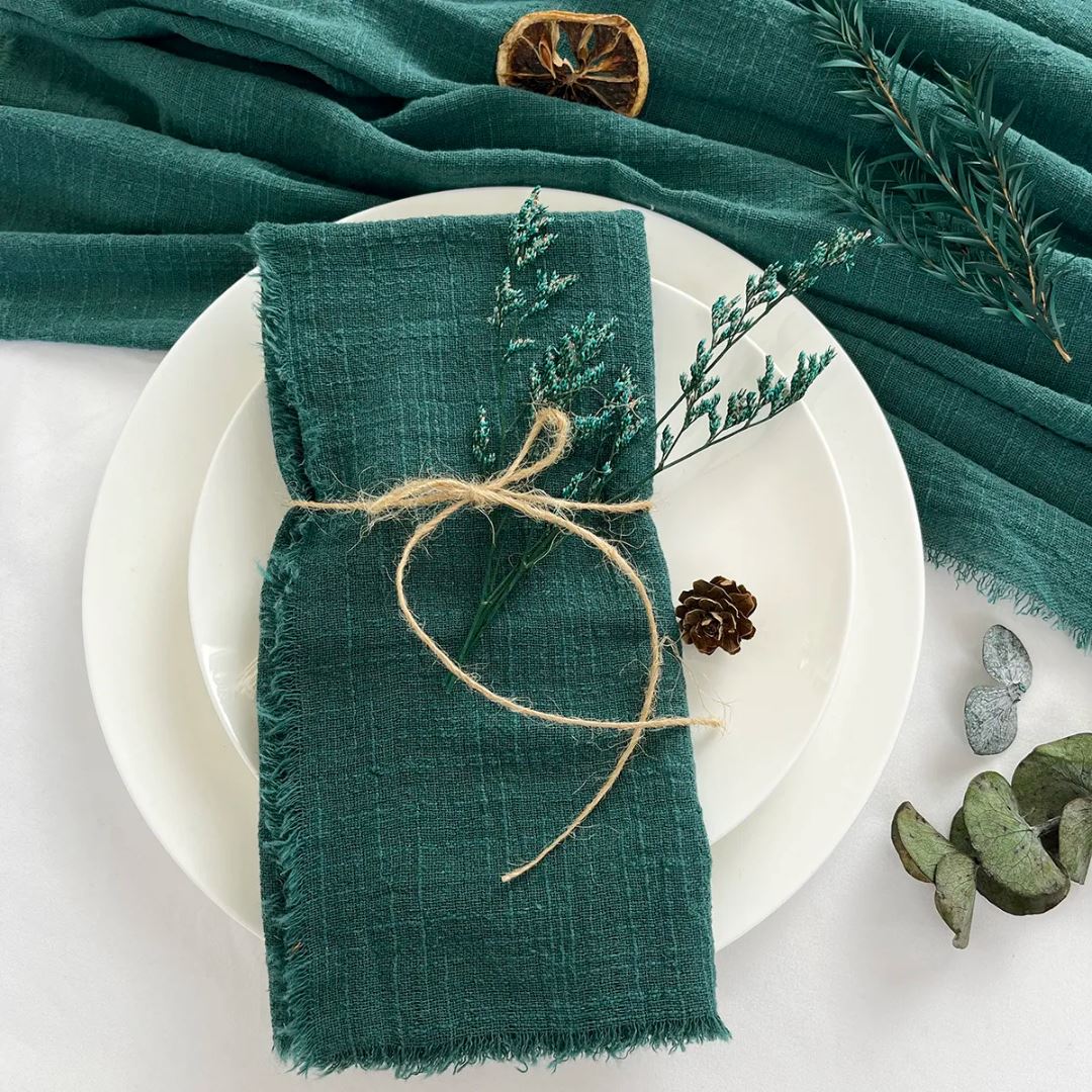 Feitos com tecido gaze 100% algodão, os guardanapos combinam leveza, durabilidade e um visual encantador. O design em estilo retrô e acabamento sem rebarbas conferem um charme natural à decoração da mesa — ideal para eventos rústicos ou minimalistas.