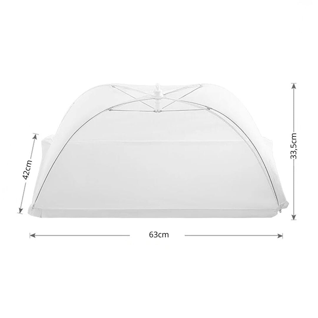 - Barreira contra insetos: malha fina evita moscas e mosquitos, mantendo seus pratos sempre limpos e seguros.